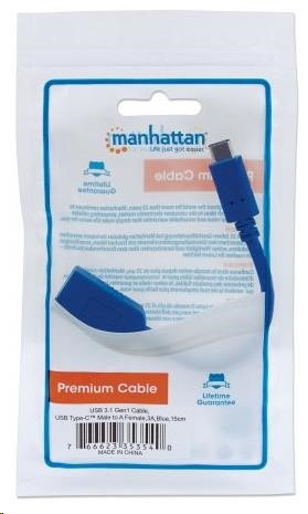 MANHATTAN USB kábel 2.0 A - USB 3.1 C (F/M), modrá