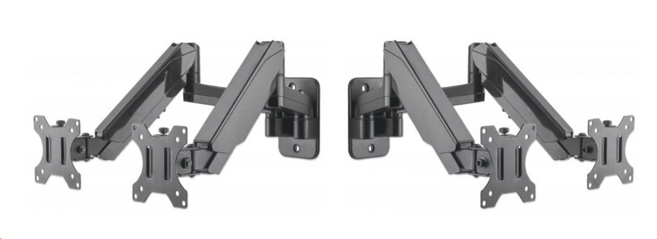 Dve ramená s plynovou pružinou, podporuje dva 17" až 32" televízory alebo monitory do 8 kg (17.64 libier.)
