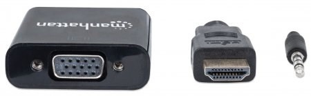 MANHATTAN Prevodník HDMI na VGA + zvuk (HDMI samec na VGA samica, so zvukom, Polybag)