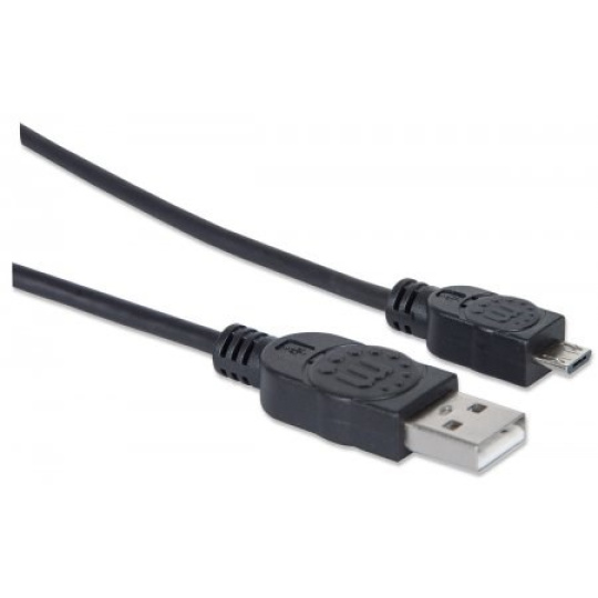 MANHATTAN Pripojovací kábel USB 2.0 A samec / Micro-B samec, 1.8 m, čierna