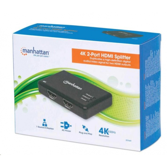 MANHATTAN Splitter HDMI 2 porty, 4K@30Hz, čierny