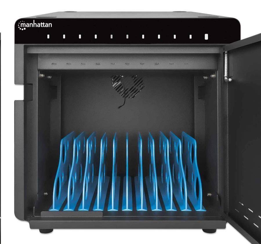 SKU style="color: #3333; text-transform: none; text-indent: 0px; letter-spacing: normal; font-family: Raleway, sans-serif; veľkosť písma: 13px; štýl písma: normal; váha písma: 400; medzery medzi slovami: 0px; float: none; display: inline !important; white-space: normal; orphans: 2; widows: 2; background-color: #ffffff; font-variant-ligatures: normal; font-variant-caps: normal; -webkit-text-stroke-width: 0px; text-decoration-thickness: initial; text-decoration-style: initial; text-decoration-color: initial;">: 715942 Návštevníci, hostia a zamestnanci nosia svoje mobilné zariadenia na rôzne miesta. Poskytnite svojim ľuďom možnosť nabíjať vybité batérie smartfónov alebo tabletov pomocou 10portovej stolovej nabíjacej skrine - 180 W od spoločnosti Manhattan. Je to ideálne riešenie nabíjania pre reštaurácie, školy, telocvične, lekárske ordinácie, univerzity, hotely, autopožičovne a ďalšie zariadenia. Používatelia mobilných zariadení chcú svoje zariadenia rýchlo späť. Vďaka technológii Power Delivery 3.0 na všetkých 10 portoch USB-C, nebudú musieť dlho čakať. S výkonom na jeden port až 3 A / 18 W sú smartfóny, tablety a iné zariadenia USB pripravené na prevádzku v okamihu. LED diódy umiestnené na prednej strane vám ukážu, kedy je batéria úplne nabitá. Všetky tieto drahé zariadenia sú veľmi zodpovedné, ale bezpečnostné mechanizmy v tejto skrini sú rovnako rozsiahle. Poskytuje ochranu proti preťaženiu, nadprúdu, skratu, napäťovým špičkám a dokonca aj proti úderu blesku. Zlodeji a vandali nemajú šancu proti pevnému a odolnému kovovému krytu tejto stolovej nabíjacej skrine. Bezpečne ho uzamknite pomocou priloženej 2-dielnej sady kľúčov a umožnite prístup len oprávneným osobám. Zabudovaný ventilátor a vetracie otvory odvádzajú teplo a udržiavajú všetky zariadenia v chlade. Gumové nožičky zabraňujú skrinke v skĺznutí na akomkoľvek povrchu. Udržujte svoje zariadenia usporiadané v 10 priehradkách s rozmermi 264 (D) x 22 (Š) x 235 (V) mm/10.39 x 0.87 x 9.25 in. každý. Na usporiadanie nabíjacích káblov použite káblový manažment zabudovaný v priehradkách (k dispozícii v spoločnosti Manhattan). Keďže táto nabíjacia skrinka má namiesto zásuviek USB-C porty, nepotrebujete ďalšie sieťové nabíjačky. Vstup striedavého prúdu na zadnej strane je konektor C20, ktorý umožňuje nahradiť dodaný napájací kábel iným káblom podľa vašej oblasti.