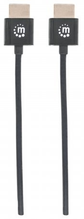 MANHATTAN Ultratenký vysokorýchlostný kábel HDMI s Ethernetom, HEC, ARC, 3D, 4K, HDMI samec - samec, tienený, čierny, 1 m