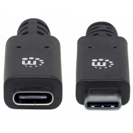 Kábel Manhattan USB-C, USB 3.1 Gen 2, USB-C samec na USB-C samica, 10 Gb/s, 5 A, 50 cm, čierna