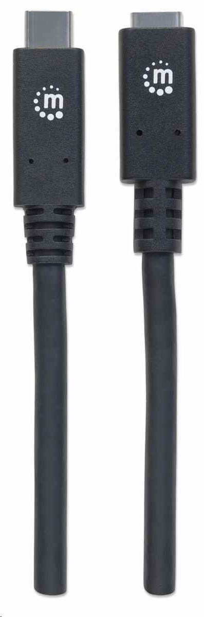 Kábel Manhattan USB-C, USB 3.1 Gen 2, USB-C samec na USB-C samica, 10 Gb/s, 5 A, 50 cm, čierna