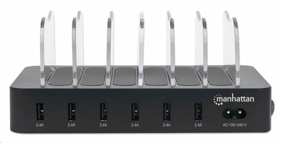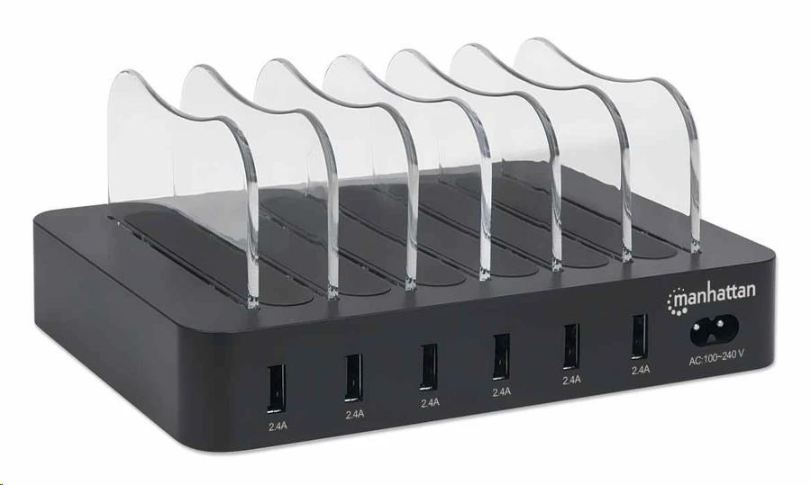 Prenosná elektronika s rozhraním USB kladie vysoké nároky na napájanie batérií a 6portová nabíjacia stanica Manhattan USB pomáha udržiavať vaše tablety, mobilné telefóny, digitálne fotoaparáty a ďalšie zariadenia nabité a pripravené na použitie. Táto nabíjacia stanica sa pripája do akejkoľvek štandardnej zásuvky a ponúka rýchle nabíjanie. Stanica s celkovým výkonom 50 W ponúka technológiu Smart IC na optimalizáciu nabíjania zariadení. Každý port podporuje až 5 V/2.4 A na rýchle nabíjanie smartfónov a iných prenosných zariadení. Okrem toho inteligentne chráni seba a vaše zariadenia pred skratom, prepätím, nadprúdom a prehriatím.