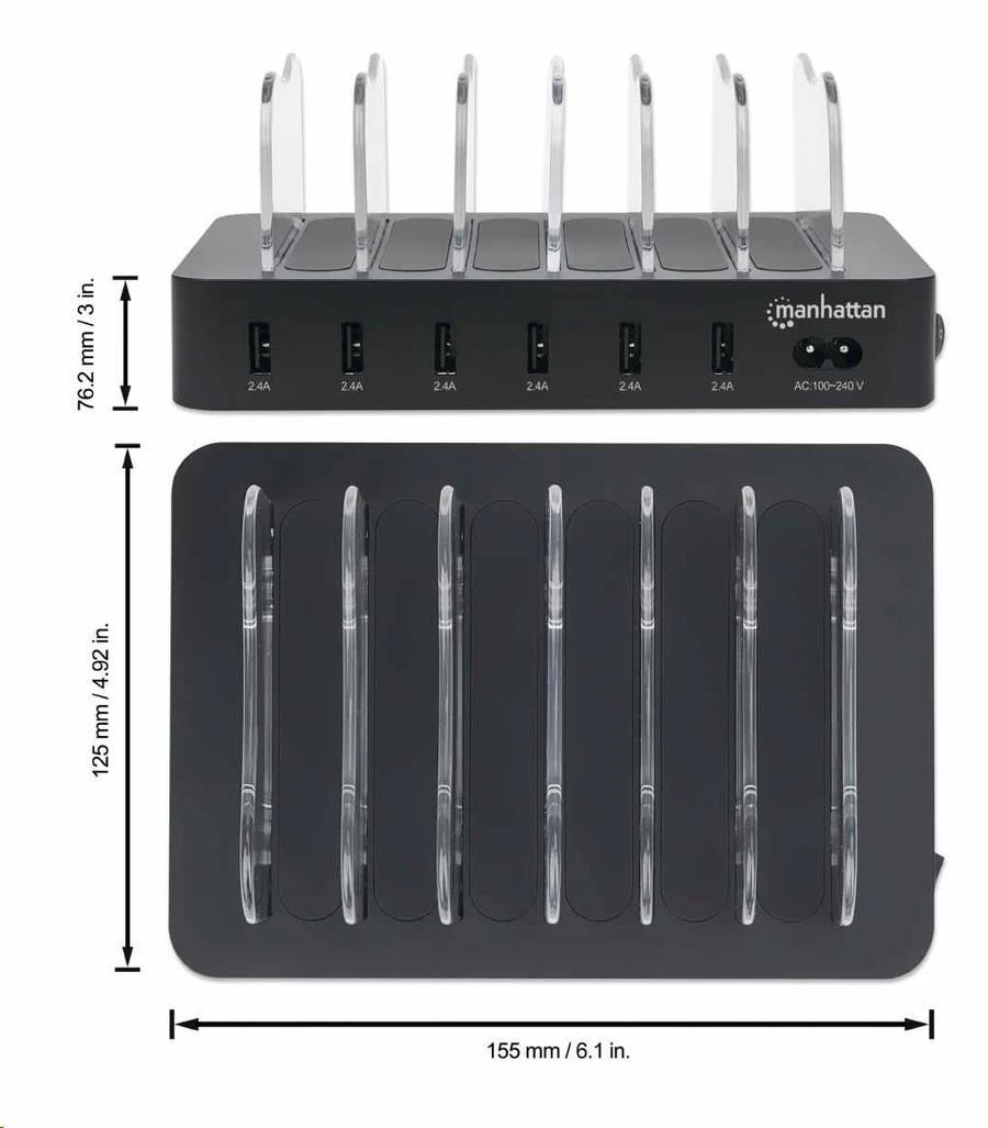 Manhattan USB nabíjacia stanica, 6-portová USB nabíjacia stanica, USB-A, čierna