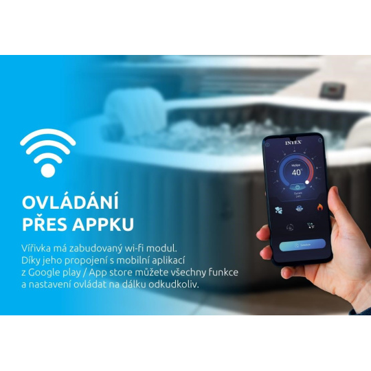 Vírivka má zabudovaný wi-fi modul, vďaka jeho prepojeniu s mobilnou aplikáciou z Google play / App store si môžete všetky funkcie a nastavenia ovládať na diaľku odkiaľkoľvek. Dokonalú relaxačnú kúpeľňu tak stihnete pripraviť ešte pred vaším príchodom.