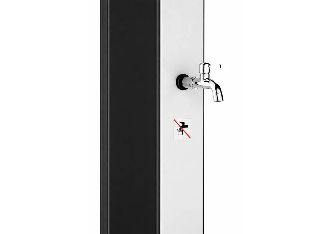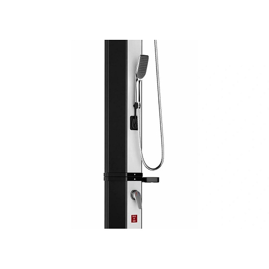 Zahradní dvoudílná a skladná sprcha DUO v oktagonovém provedení s objemem 60 l pro venkovní použití zajistí ohřev vody přiváděné ze zahradní hadice a tím perfektní pocit pohodlí při sprchování teplou nebo vlažnou vodou. Sprcha má pákovou baterii, ruční sprchu i kohoutek na oplach nohou. Ohřev vody zajišťuje sluneční záření a tělo sprchy, které funguje jako solární kolektor. Pro sprchování musí být zahradní sprcha stále napojena na vodovodní řad. Není-li napojena, nelze se sprchovat. Sprcha se kotví pomocí 4 šroubů (nejsou součástí balení) pevně k zemi, čímž je zajištěna její perfektní stabilita.