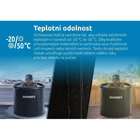 Káď je navrhnutá tak, aby odolala teplotám od -20 °C do 50 °C. Vďaka tomu je ideálna na použitie za akéhokoľvek počasia a počas roka.