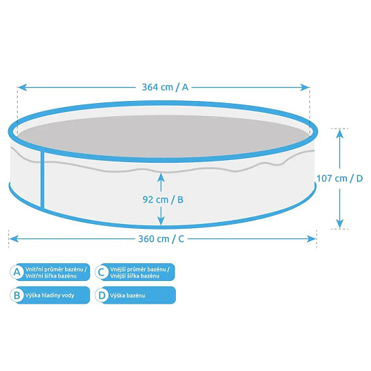 | Průměr bazénu | 3,66 m |