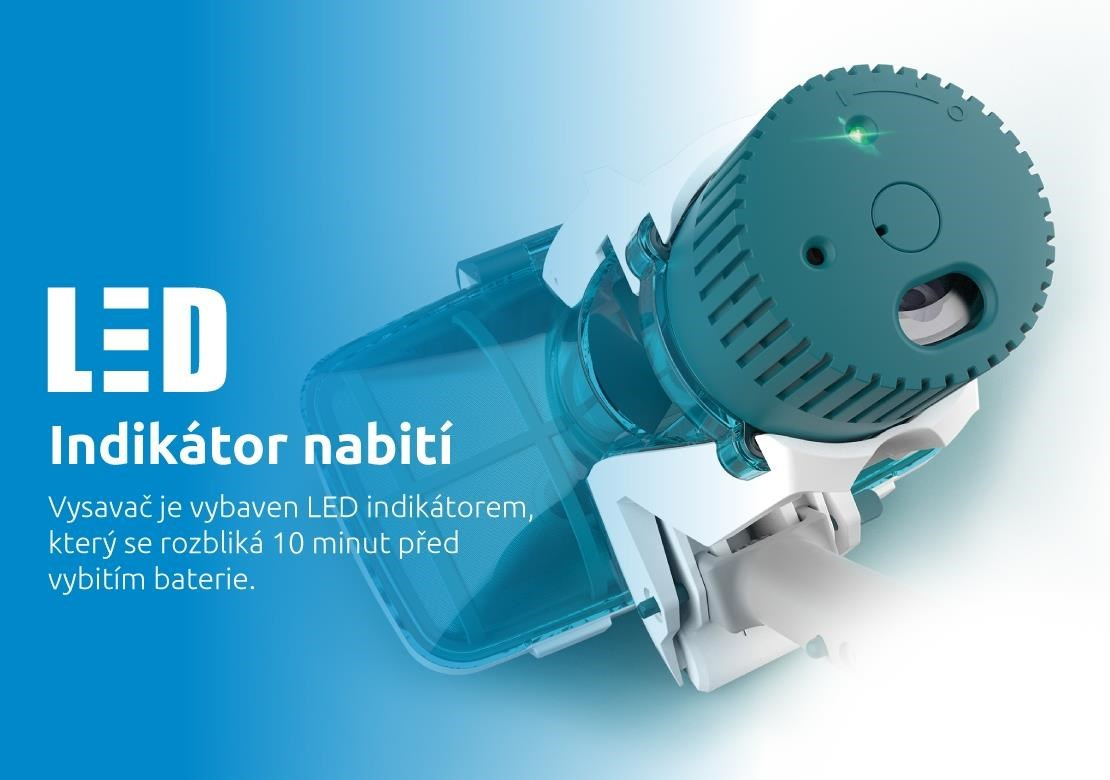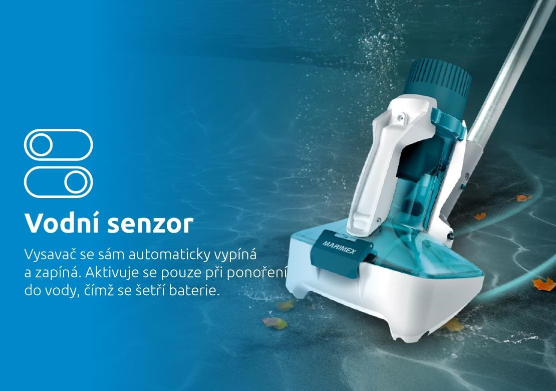 Vodný senzor zabezpečí automatické zapínanie a vypínanie pri ponorení do vody, čím sa šetrí batéria vysávača. LED indikátor navyše upozorní na nízku kapacitu batérie. Bezpečnostný mechanizmus dokáže zastaviť čepele, ak dôjde k ucpaniu vysávača, čím zabezpečuje bezpečný a bezproblémový chod.