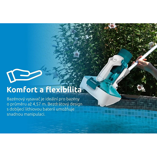 - vhodný pre nadzemné aj zapustené bazény do priemeru 4,57 m