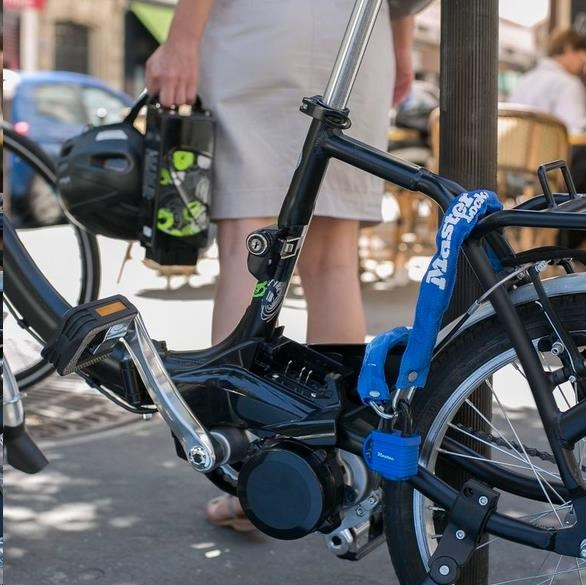 Zpevnený oceľový reťaz s oceľovým visacím zámkom je 90 cm dlhý a obsahuje oceľové spojky o priemere 6 mm, ktoré odolávajú rezu. Nylonový kryt reťaze zabraňuje škrabaniu. Visací oceľový zámok o priemere 40 mm je odolný voči poveternostným vplyvom. Plastový kryt na visacom zámku zabraňuje škrabaniu. Tretia s priemerom 9 mm je vyrobená z ocele pre odolnosť voči rezu. Obsahuje 4kolíkový valec zabraňujúci vyhmatávaniu a dvojitú západku odolnú voči vypáčeniu.