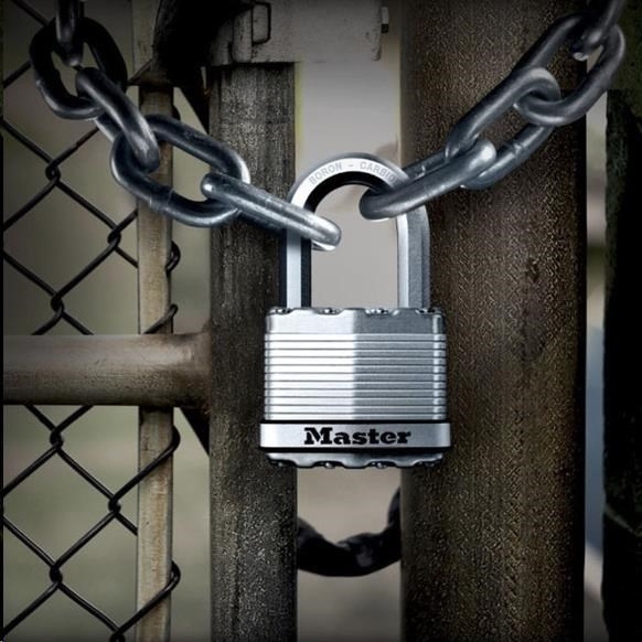 - Visací zámok s šírkou 64 mm s telom z vrstvenej ocele spevnený titánom pre vyššiu odolnosť a spoľahlivosť.