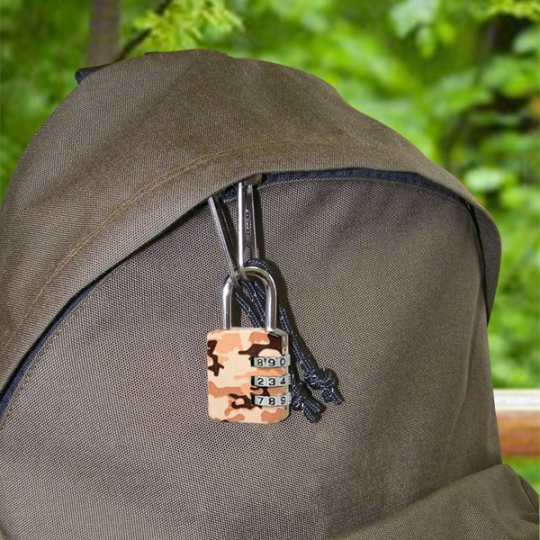 Visací kombinačný zámok 1509EURDCAMO pre všeobecnú ochranu. Zinkové telo zámku má šírku 30mm. Oceľový trmen s priemerom 5mm je dlhý 22mm a je vyrobený z chromovanej ocele a ponúka odolnosť proti rezaniu a preťahovaniu. Vlastné nastavenie 3-miestneho kombinácie zámku ponúka pohodlie bez kľúča.