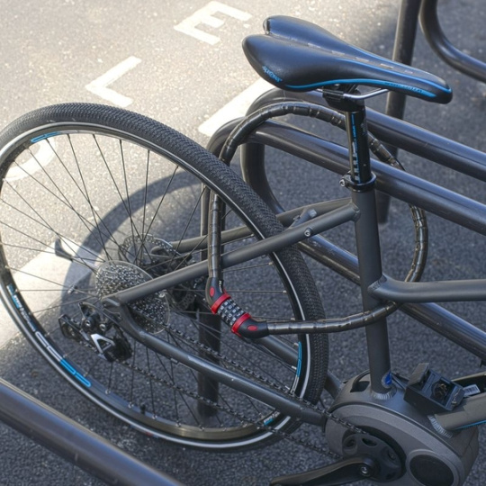 Masívne kombinačné lanko s priemerom 18 mm a dĺžkou 1m má dymovo čierny vinylový poťah, ktorý zabraňuje poškrabaniu. Obsahuje integrovaný nastavitelný 4-ciferný kombinovaný zámok.