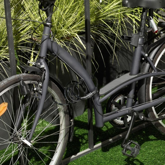 Pevný spirálový kombinovaný kabelový zámok je dlhý 1,8m a má priemer 8mm pre maximálnu pevnosť a pružnosť. Obsahuje integrovaný nastaviteľný 4-ciferný kombinovaný zámok. Jeho vinylový potah zabraňuje poškrabaniu. Vlastné navíjanie pre jednoduché uloženie.