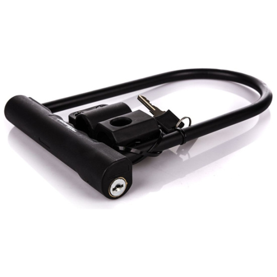 Konštrukcia zámku je vyrobená z odolnej tvrdenej ocele odolnej voči poveternostným vplyvom. Jeho thrm je z kalenej ocele s ôsmouholníkovým profilom o priemere 12 mm. Vinylové ??čeťovanie thrm zabraňuje poškrabaniu laku. Zámok obsahujeDiskovú cylindrickú vložku odolnú proti vyhmataniu a dvojitú západku odolnú proti vypáčeniu. Navyše krytka kľúčovej dierky zabraňuje vniknutiu nečistôt. Súčasťou balenia je držiak pre praktické skladovanie a 2 ks kľúčov.