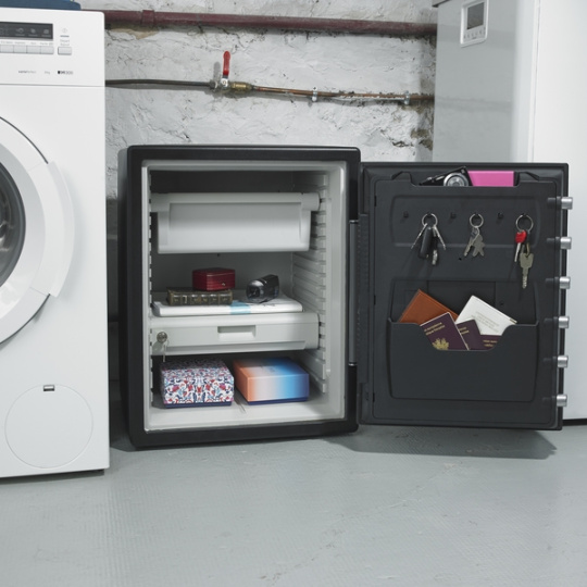 - Masívna oceľová konštrukcia odolná vode (24 hodín) a ohňu (>60 min)