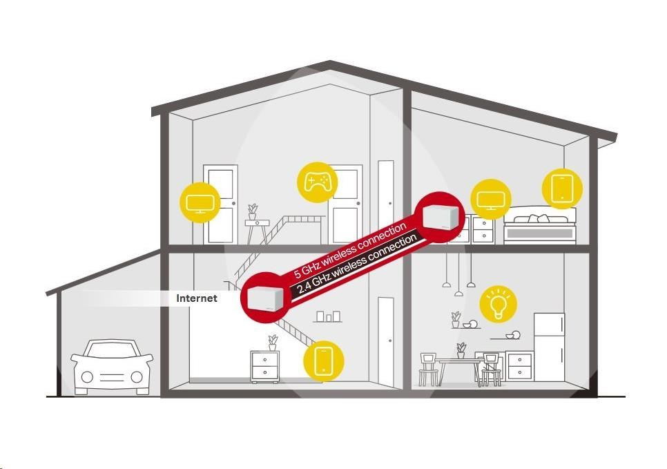 - Pokrytie celej domácnosti – pokrytie priestoru až 550 m2 (6 000 štvorcových stôp) vysokorýchlostnou sieťou Wi-Fi, ktorá eliminuje mŕtve zóny Wi-Fi pokrytia vo vašej domácnosti.