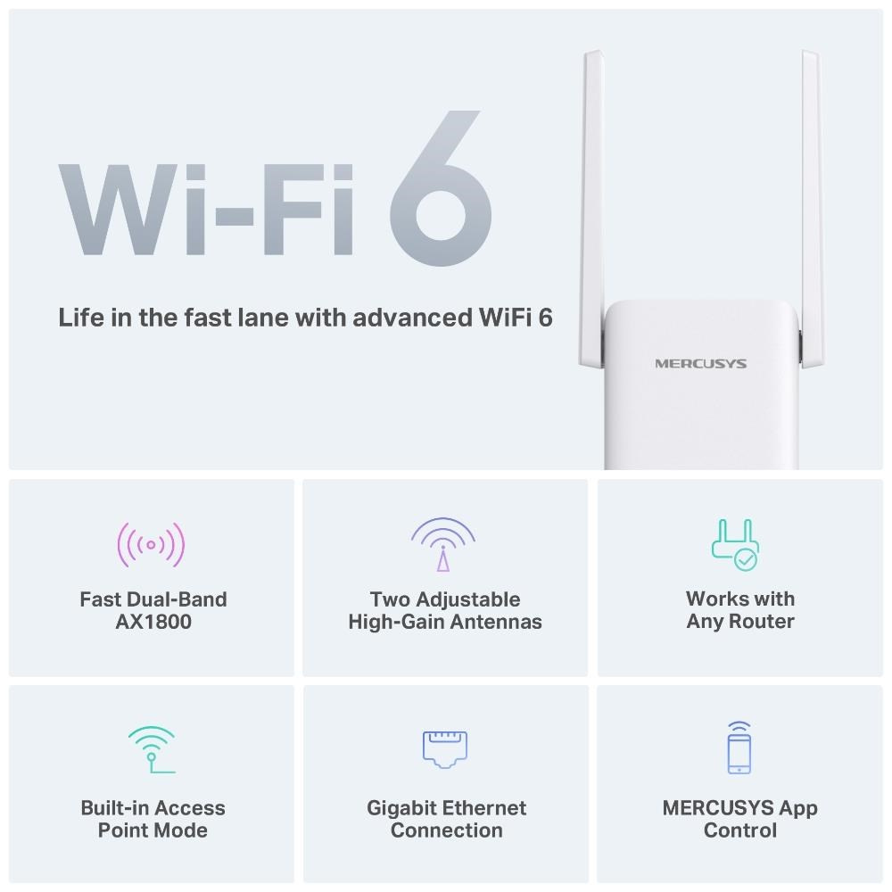 MERCUSYS ME70X WiFi6 Extender/Repeater (AX1800,2,4GHz/5GHz,1xGbELAN)