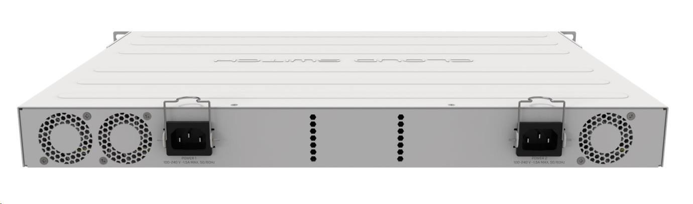 CRS354-48G-4S+2Q+RM má dva integrované zdroje napájania s redundantnou funkciou. V prípade výpadku primárneho zdroja napájania je možné funkciu nahradiť druhým zdrojom napájania, ktorý je v danom okamihu pripravený. Preto výpadok jedného zdroja neohrozí prevádzku vašej siete.
