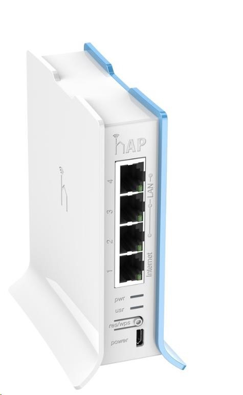 hAP lite je nový smerovač (AP) navrhnutý špeciálne pre domácnosti a malé kancelárie. Nabíjanie 2.4GHz WiFi s 802.11 b/g/n s tlačidlom WPS na jednoduché pripojenie klientov bez znalosti hesla. Procesor je taktovaný na 650 MHz a je podporovaný 32 MB pamäte DDR RAM. K dispozícii sú celkovo štyri 100Mb/s ethernetové porty s funkciou Auto-MDI/X. Napájanie prebieha cez port microUSB, ktorý je určený výhradne na tento účel, nie na prenos dát. Napájací adaptér je súčasťou balenia.