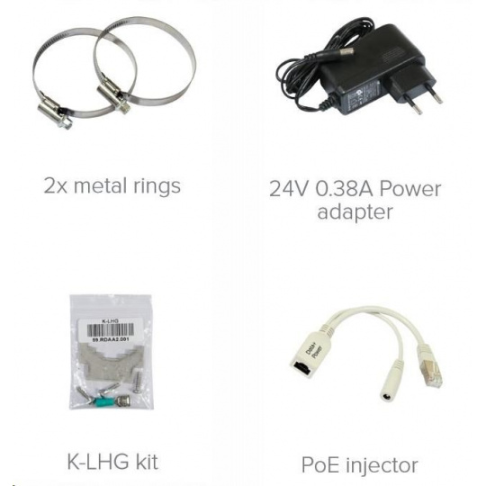 Balenie obsahuje: 3x RBLHG-5nD, injektor PoE, napájací zdroj, montážna sada na stožiar