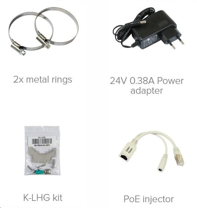 Balenie obsahuje: 3x RBLHG-5nD, injektor PoE, napájací zdroj, montážna sada na stožiar