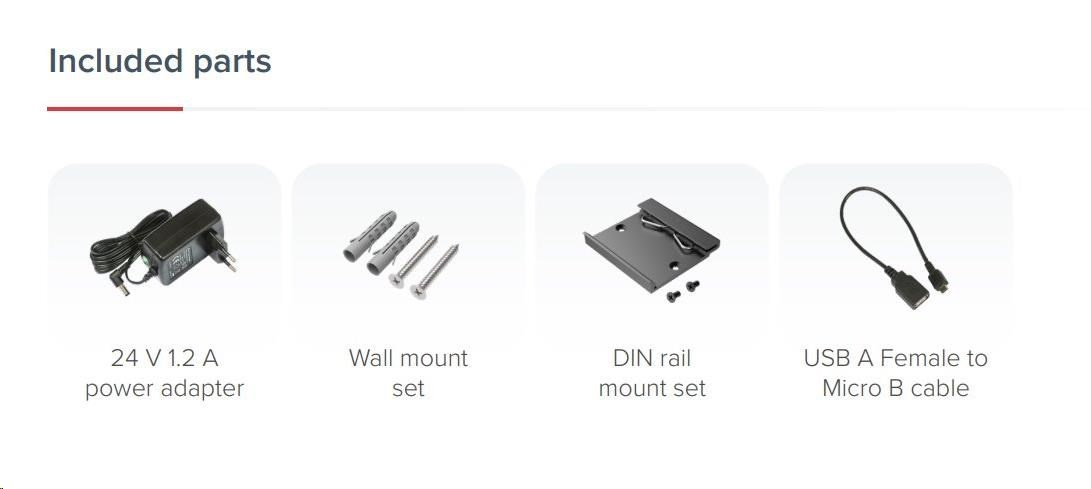 - Široký rozsah napájania: konektor DC, PoE, Micro USB