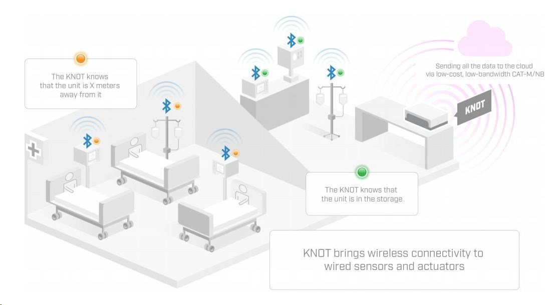 KNOT dokáže monitorovať integrované GPIO, konvertovať protokol RS485/Modbus na TCP/IP a tiež pakety Bluetooth na TCP/IP pomocou HTTPS alebo MQTT. KNOT možno použiť ako prevodník zo snímačov s káblom RS485/Modbus na odosielanie údajov na server Modbus. Áno, KNOT prináša bezdrôtové pripojenie ku káblovým snímačom a akčným členom, ako sú merače a relé. Napríklad predajný automat so snímačmi teploty a vlhkosti pripojený k systému KNOT môžete spravovať len s niekoľkými megabajtmi denne!