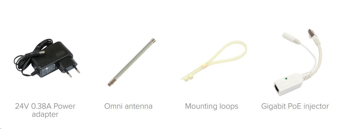 Balenie obsahuje: routerBOARD RBGrooveGA-52HPacn, injektor PoE, napájací zdroj, montážnu sadu, všesmerovú anténu 6 dBi