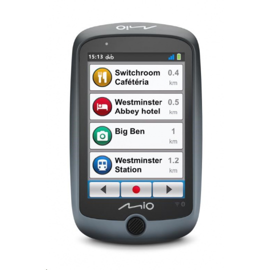 Zariadenie Mio Cyclo™ Discover Connect s veľkým 3,5" dotykovým displejom, s jednoduchou štruktúrou ponuky a prehľadnými obrazovkovými tlačidlami zabezpečuje naozaj ľahké používanie.