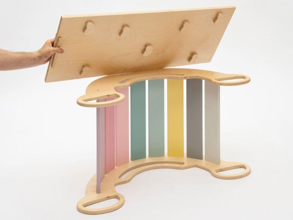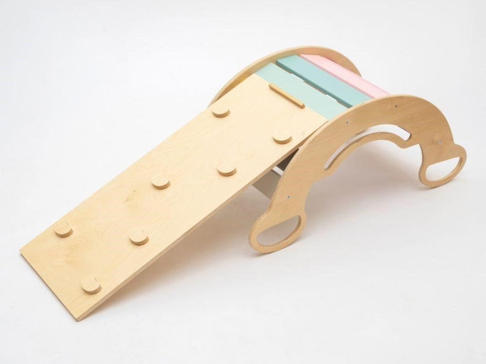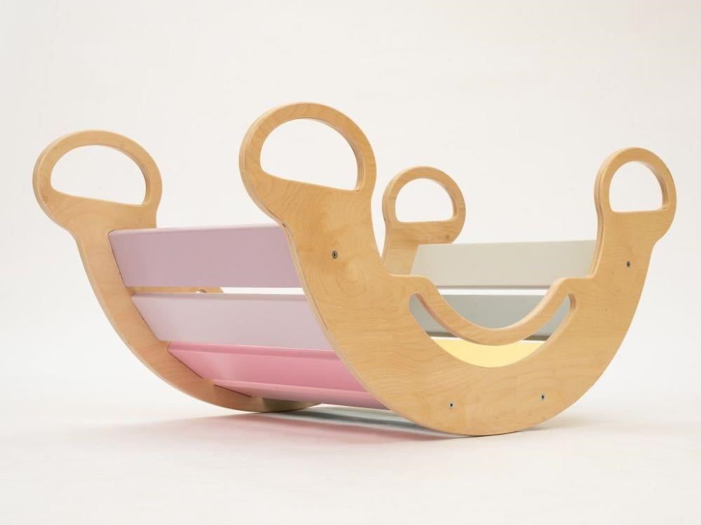 Montessori detská hojdačka smile 6in1 určite vyčarí úsmev na tvári vašej dievčatka alebo chlapca. Svojím dizajnom, pastelovými farbami a širokým úsmevom bude denne lákať deti k zábavnej hre aj príjemnému houpaniu. Jej využitie je všestranné, môže byť hojdačkou, šmykľavkou, lezeckou stienkou, skrýšou aj sedacou časťou, pri doplnení obojstranným doskou aj detským nábytkom. Obojstranná doska nie je súčasťou hojdačky. Vďaka jemným pastelovým farbám je vhodná do každého interiéru. Vyrobená je z tých najkvalitnejších materiálov, ručne dohladka opracovaná a lakovaná farbami s atestom. Montessori hojdačka smile je širšia než naše Montessori hojdačky 5in1, preto k tejto hojdačke ponúkame aj špeciálnu obojstrannú dosku, ktorá je doplnkom ku hojdačkám smile. Vďaka doske jednoducho premeníte hojdačku smile na detský stolík. Obojstranná doska nie je súčasťou hojdačky, pre využitie hojdačky ako nábytku je nutné dosku samostatne dokúpiť.
