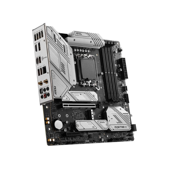 MAG B760M MORTAR WIFI II je navrhnutý pre hráčov, poskytuje stabilný, pevný a odolný základ pre kompaktné mATX PC zostavy. S Wi-Fi 6E, 2.5G LAN, DDR5, PCIe 5.0 riešeniami a 3 M.2 konektormi je pripravený na procesory Intel® 14. a 13. generácie Core.