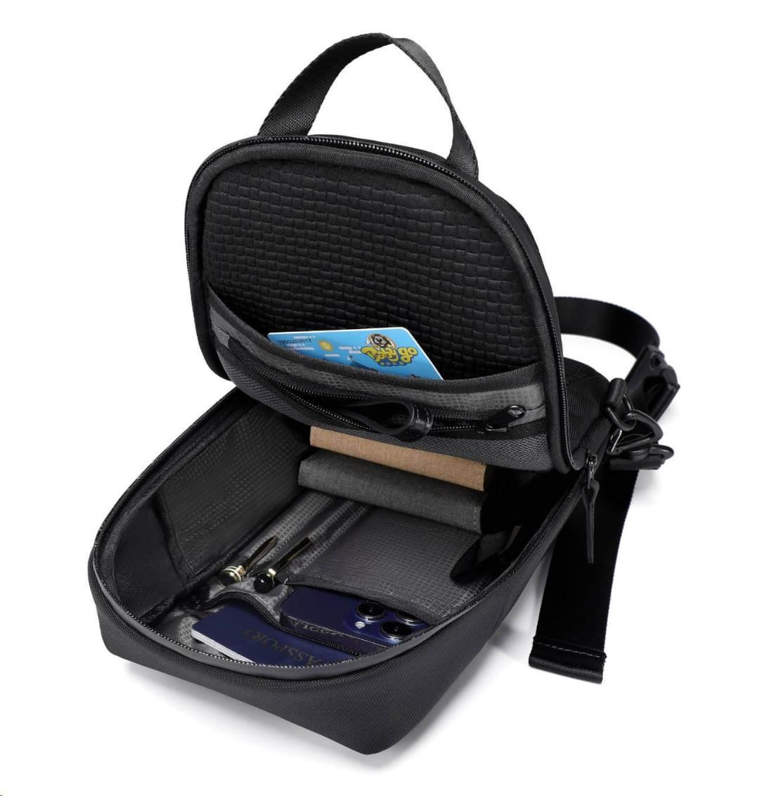 MYBALO ASTON Perfektní volba pro minimalisty s dobrým vkusem 6 ikon: - Nejtenčí batoh - Elegantní - Kapsa na notebook do 15,6" - Kapsa na tablet do 9" - Otevírání o 180 stupňů - USB a USB-C port - Drží tvar - Voděodolný - Skryté kapsy Elegantní a minimalistický Jedná se o velmi elegantní a minimalistický batoh. S tímto parťákem neuděláte chybu při běžném nošení do města, ani na důležité schůzce. Tenký batoh MYBALO Aston je batoh s vůbec nejmenší hloubkou z naší nabídky. Díky tomu působí elegantně a minimalisticky, ale i přesto se do něj vejdou všechny vaše nezbytnosti. Kvalitní voděodolný materiál, dlouhá životnost Kvalitní umělá kůže zajišťuje trvanlivost a odolnost batohu proti vodě a opotřebení. MYBALO Aston tak bude vaším společníkem opravdu dlouho. Drží tvar Batoh si zachovává svůj tvar také v případě, že jej budete mít úplně prázdný. Vestavěný USB a USB-C port Nabíjejte svá elektronická zařízení kdekoli a kdykoli díky vestavěnému USB a USB-C portu. Popruh k uchycení na kufr Cestujte pohodlně. Kdykoli chcete mít volná záda, jednoduše připevněte batoh na rukojeť svého kufru. Pohodlné polstrování Užijte si komfortní nošení díky kvalitnímu a prodyšnému polstrování ramenních popruhů a zádové části. Další praktické kapsy Zorganizujte si pohodlně a snadno své věci díky množství vychytaných kapes. Skryté kapsy V zádové části a na ramenním popruhu najdete skryté kapsy pro bezpečné uložení cenností. Vnitřní kapsy Vnitřní kapsy slouží pro snadnou organizaci všech vašich věcí. Přední kapsa Přední kapsa je určena pro věci, které chcete mít rychle a snadno po ruce. Parametry: - Rozměry: 46 x 30 x 9 cm - Objem: 11 l - Hmotnost: 1,19 kg - Kapsa na notebook: Ano (do vel. 15,6") - Kapsa na tablet: Ano (do vel. 9") - USB port: Ano - Voděodolnost: Ano - Hlavní materiál: Ekokůže + Polyester - Podšívka: Polyester - Barva: Černá