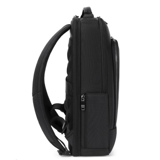 MYBALO ASTON Perfektní volba pro minimalisty s dobrým vkusem 6 ikon: - Nejtenčí batoh - Elegantní - Kapsa na notebook do 15,6" - Kapsa na tablet do 9" - Otevírání o 180 stupňů - USB a USB-C port - Drží tvar - Voděodolný - Skryté kapsy Elegantní a minimalistický Jedná se o velmi elegantní a minimalistický batoh. S tímto parťákem neuděláte chybu při běžném nošení do města, ani na důležité schůzce. Tenký batoh MYBALO Aston je batoh s vůbec nejmenší hloubkou z naší nabídky. Díky tomu působí elegantně a minimalisticky, ale i přesto se do něj vejdou všechny vaše nezbytnosti. Kvalitní voděodolný materiál, dlouhá životnost Kvalitní umělá kůže zajišťuje trvanlivost a odolnost batohu proti vodě a opotřebení. MYBALO Aston tak bude vaším společníkem opravdu dlouho. Drží tvar Batoh si zachovává svůj tvar také v případě, že jej budete mít úplně prázdný. Vestavěný USB a USB-C port Nabíjejte svá elektronická zařízení kdekoli a kdykoli díky vestavěnému USB a USB-C portu. Popruh k uchycení na kufr Cestujte pohodlně. Kdykoli chcete mít volná záda, jednoduše připevněte batoh na rukojeť svého kufru. Pohodlné polstrování Užijte si komfortní nošení díky kvalitnímu a prodyšnému polstrování ramenních popruhů a zádové části. Další praktické kapsy Zorganizujte si pohodlně a snadno své věci díky množství vychytaných kapes. Skryté kapsy V zádové části a na ramenním popruhu najdete skryté kapsy pro bezpečné uložení cenností. Vnitřní kapsy Vnitřní kapsy slouží pro snadnou organizaci všech vašich věcí. Přední kapsa Přední kapsa je určena pro věci, které chcete mít rychle a snadno po ruce. Parametry: - Rozměry: 46 x 30 x 9 cm - Objem: 11 l - Hmotnost: 1,19 kg - Kapsa na notebook: Ano (do vel. 15,6") - Kapsa na tablet: Ano (do vel. 9") - USB port: Ano - Voděodolnost: Ano - Hlavní materiál: Ekokůže + Polyester - Podšívka: Polyester - Barva: Černá.