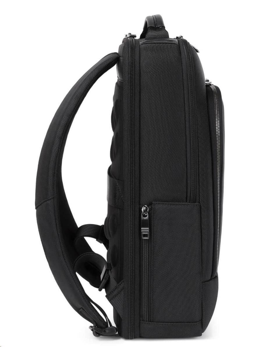 MYBALO ASTON Perfektní volba pro minimalisty s dobrým vkusem 6 ikon: - Nejtenčí batoh - Elegantní - Kapsa na notebook do 15,6" - Kapsa na tablet do 9" - Otevírání o 180 stupňů - USB a USB-C port - Drží tvar - Voděodolný - Skryté kapsy Elegantní a minimalistický Jedná se o velmi elegantní a minimalistický batoh. S tímto parťákem neuděláte chybu při běžném nošení do města, ani na důležité schůzce. Tenký batoh MYBALO Aston je batoh s vůbec nejmenší hloubkou z naší nabídky. Díky tomu působí elegantně a minimalisticky, ale i přesto se do něj vejdou všechny vaše nezbytnosti. Kvalitní voděodolný materiál, dlouhá životnost Kvalitní umělá kůže zajišťuje trvanlivost a odolnost batohu proti vodě a opotřebení. MYBALO Aston tak bude vaším společníkem opravdu dlouho. Drží tvar Batoh si zachovává svůj tvar také v případě, že jej budete mít úplně prázdný. Vestavěný USB a USB-C port Nabíjejte svá elektronická zařízení kdekoli a kdykoli díky vestavěnému USB a USB-C portu. Popruh k uchycení na kufr Cestujte pohodlně. Kdykoli chcete mít volná záda, jednoduše připevněte batoh na rukojeť svého kufru. Pohodlné polstrování Užijte si komfortní nošení díky kvalitnímu a prodyšnému polstrování ramenních popruhů a zádové části. Další praktické kapsy Zorganizujte si pohodlně a snadno své věci díky množství vychytaných kapes. Skryté kapsy V zádové části a na ramenním popruhu najdete skryté kapsy pro bezpečné uložení cenností. Vnitřní kapsy Vnitřní kapsy slouží pro snadnou organizaci všech vašich věcí. Přední kapsa Přední kapsa je určena pro věci, které chcete mít rychle a snadno po ruce. Parametry: - Rozměry: 46 x 30 x 9 cm - Objem: 11 l - Hmotnost: 1,19 kg - Kapsa na notebook: Ano (do vel. 15,6") - Kapsa na tablet: Ano (do vel. 9") - USB port: Ano - Voděodolnost: Ano - Hlavní materiál: Ekokůže + Polyester - Podšívka: Polyester - Barva: Černá.