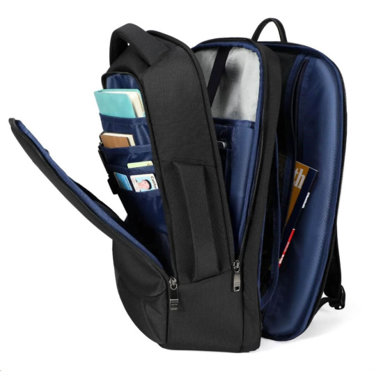 MYBALO ASTON Perfektní volba pro minimalisty s dobrým vkusem 6 ikon: - Nejtenčí batoh - Elegantní - Kapsa na notebook do 15,6" - Kapsa na tablet do 9" - Otevírání o 180 stupňů - USB a USB-C port - Drží tvar - Voděodolný - Skryté kapsy Elegantní a minimalistický Jedná se o velmi elegantní a minimalistický batoh. S tímto parťákem neuděláte chybu při běžném nošení do města, ani na důležité schůzce. Tenký batoh MYBALO Aston je batoh s vůbec nejmenší hloubkou z naší nabídky. Díky tomu působí elegantně a minimalisticky, ale i přesto se do něj vejdou všechny vaše nezbytnosti. Kvalitní voděodolný materiál, dlouhá životnost Kvalitní umělá kůže zajišťuje trvanlivost a odolnost batohu proti vodě a opotřebení. MYBALO Aston tak bude vaším společníkem opravdu dlouho. Drží tvar Batoh si zachovává svůj tvar také v případě, že jej budete mít úplně prázdný. Vestavěný USB a USB-C port Nabíjejte svá elektronická zařízení kdekoli a kdykoli díky vestavěnému USB a USB-C portu. Popruh k uchycení na kufr Cestujte pohodlně. Kdykoli chcete mít volná záda, jednoduše připevněte batoh na rukojeť svého kufru. Pohodlné polstrování Užijte si komfortní nošení díky kvalitnímu a prodyšnému polstrování ramenních popruhů a zádové části. Další praktické kapsy Zorganizujte si pohodlně a snadno své věci díky množství vychytaných kapes. Skryté kapsy V zádové části a na ramenním popruhu najdete skryté kapsy pro bezpečné uložení cenností. Vnitřní kapsy Vnitřní kapsy slouží pro snadnou organizaci všech vašich věcí. Přední kapsa Přední kapsa je určena pro věci, které chcete mít rychle a snadno po ruce. Parametry: - Rozměry: 46 x 30 x 9 cm - Objem: 11 l - Hmotnost: 1,19 kg - Kapsa na notebook: Ano (do vel. 15,6") - Kapsa na tablet: Ano (do vel. 9") - USB port: Ano - Voděodolnost: Ano - Hlavní materiál: Ekokůže + Polyester - Podšívka: Polyester - Barva: Černá.