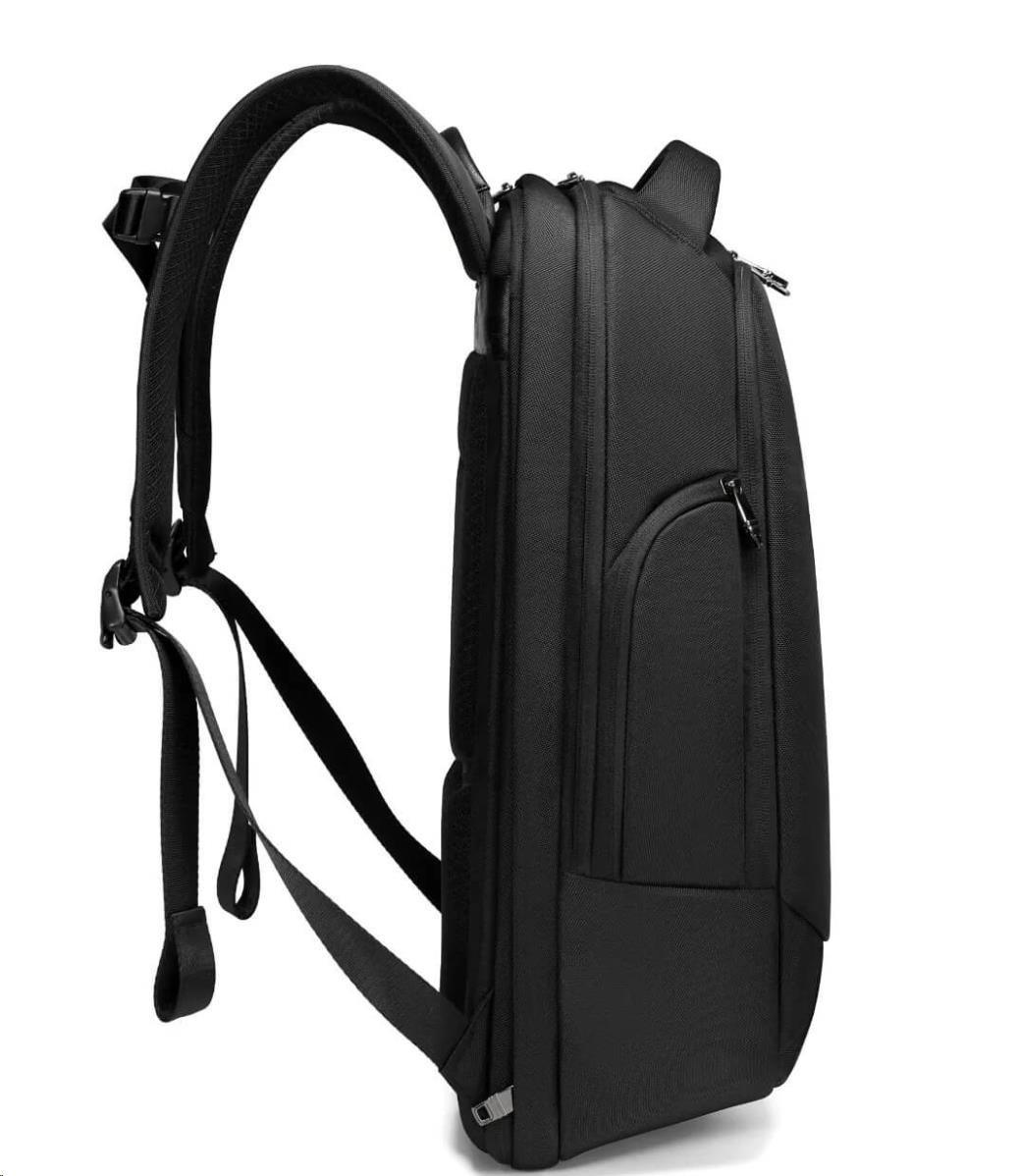 MYBALO ASTON Perfektní volba pro minimalisty s dobrým vkusem 6 ikon: - Nejtenčí batoh - Elegantní - Kapsa na notebook do 15,6" - Kapsa na tablet do 9" - Otevírání o 180 stupňů - USB a USB-C port - Drží tvar - Voděodolný - Skryté kapsy Elegantní a minimalistický Jedná se o velmi elegantní a minimalistický batoh. S tímto parťákem neuděláte chybu při běžném nošení do města, ani na důležité schůzce. Tenký batoh MYBALO Aston je batoh s vůbec nejmenší hloubkou z naší nabídky. Díky tomu působí elegantně a minimalisticky, ale i přesto se do něj vejdou všechny vaše nezbytnosti. Kvalitní voděodolný materiál, dlouhá životnost Kvalitní umělá kůže zajišťuje trvanlivost a odolnost batohu proti vodě a opotřebení. MYBALO Aston tak bude vaším společníkem opravdu dlouho. Drží tvar Batoh si zachovává svůj tvar také v případě, že jej budete mít úplně prázdný. Vestavěný USB a USB-C port Nabíjejte svá elektronická zařízení kdekoli a kdykoli díky vestavěnému USB a USB-C portu. Popruh k uchycení na kufr Cestujte pohodlně. Kdykoli chcete mít volná záda, jednoduše připevněte batoh na rukojeť svého kufru. Pohodlné polstrování Užijte si komfortní nošení díky kvalitnímu a prodyšnému polstrování ramenních popruhů a zádové části. Další praktické kapsy Zorganizujte si pohodlně a snadno své věci díky množství vychytaných kapes. Skryté kapsy V zádové části a na ramenním popruhu najdete skryté kapsy pro bezpečné uložení cenností. Vnitřní kapsy Vnitřní kapsy slouží pro snadnou organizaci všech vašich věcí. Přední kapsa Přední kapsa je určena pro věci, které chcete mít rychle a snadno po ruce. Parametry: - Rozměry: 46 x 30 x 9 cm - Objem: 11 l - Hmotnost: 1,19 kg - Kapsa na notebook: Ano (do vel. 15,6") - Kapsa na tablet: Ano (do vel. 9") - USB port: Ano - Voděodolnost: Ano - Hlavní materiál: Ekokůže + Polyester - Podšívka: Polyester - Barva: Černá.
