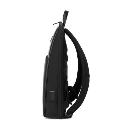 MYBALO ASTON Perfektní volba pro minimalisty s dobrým vkusem 6 ikon: - Nejtenčí batoh - Elegantní - Kapsa na notebook do 15,6" - Kapsa na tablet do 9" - Otevírání o 180 stupňů - USB a USB-C port - Drží tvar - Voděodolný - Skryté kapsy Elegantní a minimalistický Jedná se o velmi elegantní a minimalistický batoh. S tímto parťákem neuděláte chybu při běžném nošení do města, ani na důležité schůzce. Tenký batoh MYBALO Aston je batoh s vůbec nejmenší hloubkou z naší nabídky. Díky tomu působí elegantně a minimalisticky, ale i přesto se do něj vejdou všechny vaše nezbytnosti. Kvalitní voděodolný materiál, dlouhá životnost Kvalitní umělá kůže zajišťuje trvanlivost a odolnost batohu proti vodě a opotřebení. MYBALO Aston tak bude vaším společníkem opravdu dlouho. Drží tvar Batoh si zachovává svůj tvar také v případě, že jej budete mít úplně prázdný. Vestavěný USB a USB-C port Nabíjejte svá elektronická zařízení kdekoli a kdykoli díky vestavěnému USB a USB-C portu. Popruh k uchycení na kufr Cestujte pohodlně. Kdykoli chcete mít volná záda, jednoduše připevněte batoh na rukojeť svého kufru. Pohodlné polstrování Užijte si komfortní nošení díky kvalitnímu a prodyšnému polstrování ramenních popruhů a zádové části. Další praktické kapsy Zorganizujte si pohodlně a snadno své věci díky množství vychytaných kapes. Skryté kapsy V zádové části a na ramenním popruhu najdete skryté kapsy pro bezpečné uložení cenností. Vnitřní kapsy Vnitřní kapsy slouží pro snadnou organizaci všech vašich věcí. Přední kapsa Přední kapsa je určena pro věci, které chcete mít rychle a snadno po ruce. Parametry: - Rozměry: 46 x 30 x 9 cm - Objem: 11 l - Hmotnost: 1,19 kg - Kapsa na notebook: Ano (do vel. 15,6") - Kapsa na tablet: Ano (do vel. 9") - USB port: Ano - Voděodolnost: Ano - Hlavní materiál: Ekokůže + Polyester - Podšívka: Polyester - Barva: Černá.