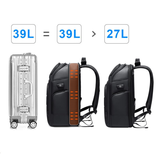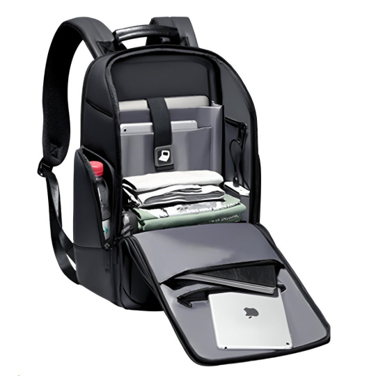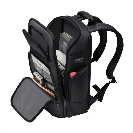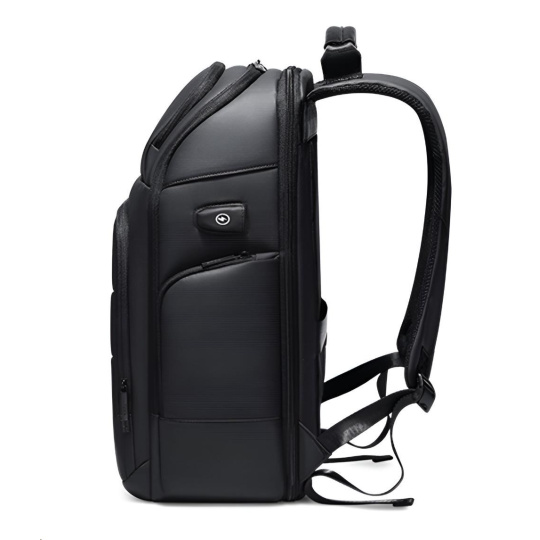 MYBALO ASTON Perfektní volba pro minimalisty s dobrým vkusem  6 ikon: - Nejtenčí batoh - Elegantní - Kapsa na notebook do 15,6" - Kapsa na tablet do 9" - Otevírání o 180 stupňů - USB a USB-C port - Drží tvar - Voděodolný - Skryté kapsy  Elegantní a minimalistický Jedná se o velmi elegantní a minimalistický batoh. S tímto parťákem neuděláte chybu při běžném nošení do města, ani na důležité schůzce.  Tenký batoh MYBALO Aston je batoh s vůbec nejmenší hloubkou z naší nabídky. Díky tomu působí elegantně a minimalisticky, ale i přesto se do něj vejdou všechny vaše nezbytnosti.  Kvalitní voděodolný materiál, dlouhá životnost Kvalitní umělá kůže zajišťuje trvanlivost a odolnost batohu proti vodě a opotřebení. MYBALO Aston tak bude vaším společníkem opravdu dlouho.  Drží tvar Batoh si zachovává svůj tvar také v případě, že jej budete mít úplně prázdný.  Vestavěný USB a USB-C port Nabíjejte svá elektronická zařízení kdekoli a kdykoli díky vestavěnému USB a USB-C portu.  Popruh k uchycení na kufr Cestujte pohodlně. Kdykoli chcete mít volná záda, jednoduše připevněte batoh na rukojeť svého kufru.  Pohodlné polstrování Užijte si komfortní nošení díky kvalitnímu a prodyšnému polstrování ramenních popruhů a zádové části.  Další praktické kapsy Zorganizujte si pohodlně a snadno své věci díky množství vychytaných kapes.  Skryté kapsy V zádové části a na ramenním popruhu najdete skryté kapsy pro bezpečné uložení cenností.  Vnitřní kapsy Vnitřní kapsy slouží pro snadnou organizaci všech vašich věcí.  Přední kapsa Přední kapsa je určena pro věci, které chcete mít rychle a snadno po ruce.  Parametry: - Rozměry: 46 x 30 x 9 cm - Objem: 11 l - Hmotnost: 1,19 kg - Kapsa na notebook: Ano (do vel. 15,6") - Kapsa na tablet: Ano (do vel. 9") - USB port: Ano - Voděodolnost: Ano - Hlavní materiál: Ekokůže + Polyester - Podšívka: Polyester - Barva: Černá