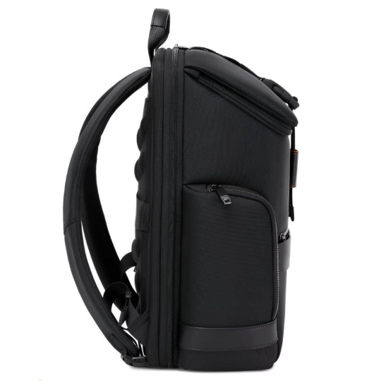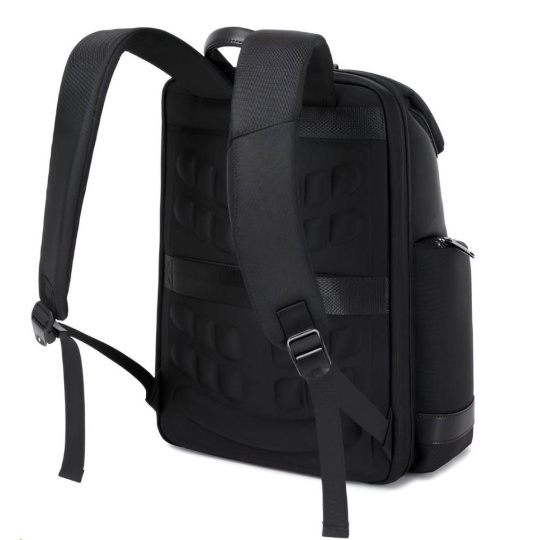 MYBALO ASTON Perfektní volba pro minimalisty s dobrým vkusem  6 ikon: - Nejtenčí batoh - Elegantní - Kapsa na notebook do 15,6" - Kapsa na tablet do 9" - Otevírání o 180 stupňů - USB a USB-C port - Drží tvar - Voděodolný - Skryté kapsy  Elegantní a minimalistický Jedná se o velmi elegantní a minimalistický batoh. S tímto parťákem neuděláte chybu při běžném nošení do města, ani na důležité schůzce.  Tenký batoh MYBALO Aston je batoh s vůbec nejmenší hloubkou z naší nabídky. Díky tomu působí elegantně a minimalisticky, ale i přesto se do něj vejdou všechny vaše nezbytnosti.  Kvalitní voděodolný materiál, dlouhá životnost Kvalitní umělá kůže zajišťuje trvanlivost a odolnost batohu proti vodě a opotřebení. MYBALO Aston tak bude vaším společníkem opravdu dlouho.  Drží tvar Batoh si zachovává svůj tvar také v případě, že jej budete mít úplně prázdný.  Vestavěný USB a USB-C port Nabíjejte svá elektronická zařízení kdekoli a kdykoli díky vestavěnému USB a USB-C portu.  Popruh k uchycení na kufr Cestujte pohodlně. Kdykoli chcete mít volná záda, jednoduše připevněte batoh na rukojeť svého kufru.  Pohodlné polstrování Užijte si komfortní nošení díky kvalitnímu a prodyšnému polstrování ramenních popruhů a zádové části.  Další praktické kapsy Zorganizujte si pohodlně a snadno své věci díky množství vychytaných kapes.  Skryté kapsy V zádové části a na ramenním popruhu najdete skryté kapsy pro bezpečné uložení cenností.  Vnitřní kapsy Vnitřní kapsy slouží pro snadnou organizaci všech vašich věcí.  Přední kapsa Přední kapsa je určena pro věci, které chcete mít rychle a snadno po ruce.  Parametry: - Rozměry: 46 x 30 x 9 cm - Objem: 11 l - Hmotnost: 1,19 kg - Kapsa na notebook: Ano (do vel. 15,6") - Kapsa na tablet: Ano (do vel. 9") - USB port: Ano - Voděodolnost: Ano - Hlavní materiál: Ekokůže + Polyester - Podšívka: Polyester - Barva: Černá
