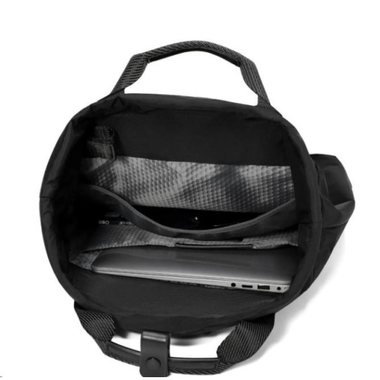 Hlavná priehradka je veľmi priestranná a stahuje sa na šnúrku. Pre prehľadné uloženie drobných predmetov sú v nej vnútorné priehradky.
