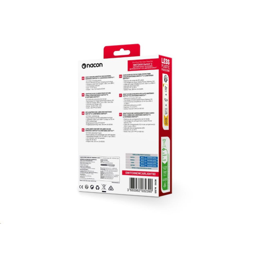 S týmto nabíjacím adaptérom od spoločnosti Nacon môžete pri ceste autom ľahko nabiť nielen novú hernú konzolu Nintendo Switch 2, ale aj konzolu Nintendo Switch, Switch Lite alebo Switch – OLED Model. Adaptér ľahko zapojíte do zásuvky zapaľovača v automobile a s pomocou USB-C kábla dlhého 1,5 metra ho následne prepojíte s konzolou, pričom o aktuálnom stave jej nabíjania vás bude informovať príslušný LED ukazovateľ. A pretože adaptér ponúka nabíjací výkon až 60 wattov a podporuje technológiu rýchleho nabíjania Power Delivery 3.0, bude vaša konzola znovu plne nabitá skôr, než sa nadívate.