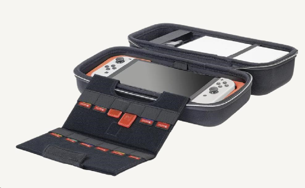 • Vyberateľná vnútorná výstelka umožňuje prenášať v puzdre bezpečne aj konzolu Switch alebo Switch – OLED Model.