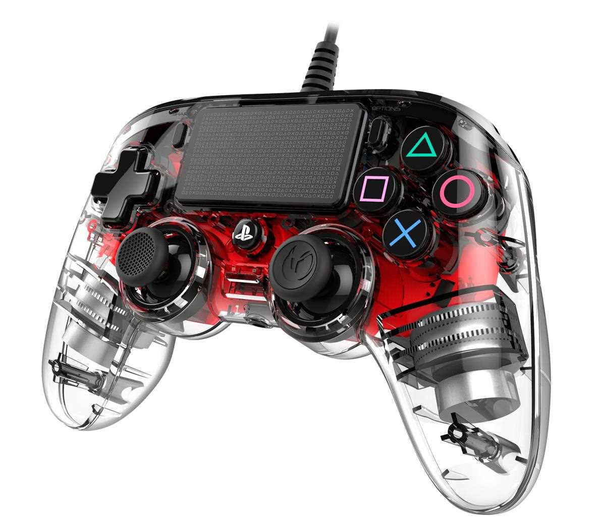 Káblový podsvietený kompaktný ovládač od značky Nacon ponúka pôsobivé množstvo funkcií, ako je dotykový panel, konektor pre slúchadlá s mikrofónom alebo dvojica vibračných motorov. Vďaka ergonomickému dizajnu sa ovládač pohodlne drží pre hráčov všetkých vekových kategórií, a to aj počas hodín hrania. V prípade podsvieteného modelu s plne priehľadným povrchom a prídavnými farebnými LED svetlami** si hráči môžu vychutnať aj štýlové svetelné efekty.