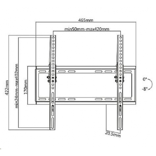 Náklopný držiak TV Fiber Mounts F7M74 Sklopný držiak na televíziu s hmotnosťou až 35kg a podporou VESA 75x75 až 400x400 Univerzálny sklopný držiak na zavesenie všetkých typov televízorov - LCD, LED, plazmové, smart, 3D, prehnuté aj OLED a QLED.. Po zavesení televízie na držiak je možné obrazovku mierne nakloniť až o 8° smerom nadol. Držiak má oceľovú konštrukciu, ktorú je možné použiť na televízie s hmotnosťou až 35kg. Podporuje zavesenie všetkých televízorov s VESA štandardom 75x75 až 400x400. Farba čierna. Záruka 10 rokov. Držiak dodávame vrátane všetkého instalačného materiálu - hmoždinky, skrutky, sada skrutiek a podložiek. Lacný držiak na TV s naklopením Fiber Mounts F7M74 Technické údaje: nosnosť 35kg podporuje VESA štandardy 75x75 až 400x400 ideálny na TV s uhlopriečkou 19" až 55" univerzálny, zavesenie všetkých typov televízorov možnosť naklonenia obrazovky smerom nadol od 0° do -8° vzdialenosť televízie od steny 21mm je naozaj malá, ale dostatočná pre spoľahlivé odvetrávanie konštrukcia držiaku je oceľová zabezpečenie televízora proti vysadeniu - 2x skrutka rozmer držiaka pre uchytenie na stenu 465x170mm farebné prevedenie čierne záruka 10 rokov Držiak TV podporuje VESA štandardy pre zavesenie: VESA 75x75 VESA 100x100 VESA 200x100 a 100x200 VESA 200x200 VESA 300x200 a 200x300 VESA 300x300 VESA 400x200 a 200x400 VESA 400x300 a 300x400 VESA 400x400