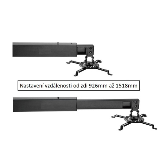 Nástenný držiak na projektory Fiber Mounts M9C45 Nástenný držiak na projektor, nastavenie vzdialenosti od steny 926-1518mm, otočný +/-180°, sklápací +/-15°, skryté vedenie káblov, nosnosť 15kg Kvalitný nástenný držiak na projektor. Nastaviteľná vzdialenosť od steny 926mm až 1518mm, naklápanie do strán +/- 15°, otáčanie do strán +/- 180°, univerzálny úchyt s roztečou 54mm až 320mm na 3 alebo 4 skrutky umožňuje uchytenie takmer všetkých projektorov, nosnosť 15kg. Držiak má systém pre skryté vedenie káblov, inštalácia a nastavenie sú veľmi jednoduché. Nástenná inštalačná plocha o rozmeroch 505x269mm zabezpečuje výborné rozloženie hmotnosti a spoľahlivé uchytenie na stenu. Nástenný držiak na projektory s krátkou projekčnou vzdialenosťou Fiber Mounts M9C45 Technické údaje: nosnosť 15kg univerzálny, rozteč otvorov pre uchytenie 54-320mm uchytenie projektora na 3 alebo 4 skrutky nastaviteľná vzdialenosť od steny 926-1518mm naklápanie do strán +/- 15° otáčanie do strán +/- 180° nástenná inštalačná plocha o rozmeroch 505x269mm systém pre skryté vedenie káblov kvalitná kovová konštrukcia inštalačná sada skrutiek, hmoždiniek a vrutov farebné prevedenie čierne záruka 5 rokov Systém pre ukrytie všetkých káblov, polohovanie projektora, jednoduchá inštalácia Fiber Mounts M9C45 Držiak projektora M9C45 je veľmi univerzálny, vo všeobecnosti je na neho možné zavesiť všetky projektory s hmotnosťou do 15kg. Uchytenie je možné ako na 3 tak aj na 4 skrutky - záleží od toho, ktorý typ projektora podporuje. Polohovanie je veľmi jednoduché. Vynikajúca kvalita podčiarknutá zárukou 5 rokov.